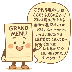 ご予約弁当のメニュー表を掲載しました。前日の12時までのご注文で翌日のお昼までに納品させて頂きます。